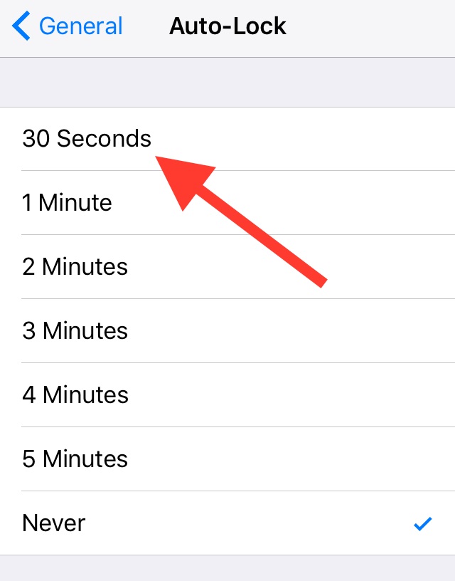 Cuối cùng là tùy chỉnh chức năng tự động khóa màn hình, khi để thời gian tự khóa quá lâu thì điện thoại cũng tốn pin kha khá. Để thay đổi thời gian tự động khóa, bạn hãy vào Settings > Display & Brightness > Auto-Lock và đặt thời gian tự động khóa màn hình lý tưởng thông thường là 30 giây.